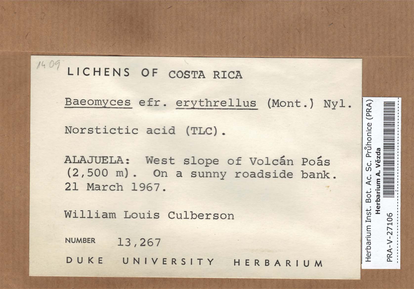 - Deposited in parcel no. 60 Argopsis,Baeomyces