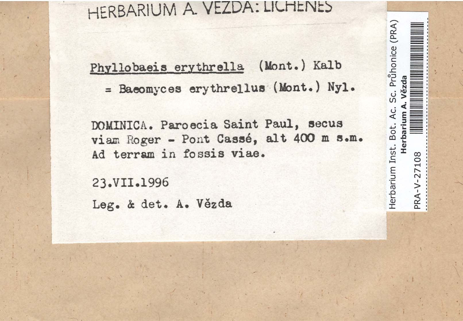 - Deposited in parcel no. 60 Argopsis,Baeomyces