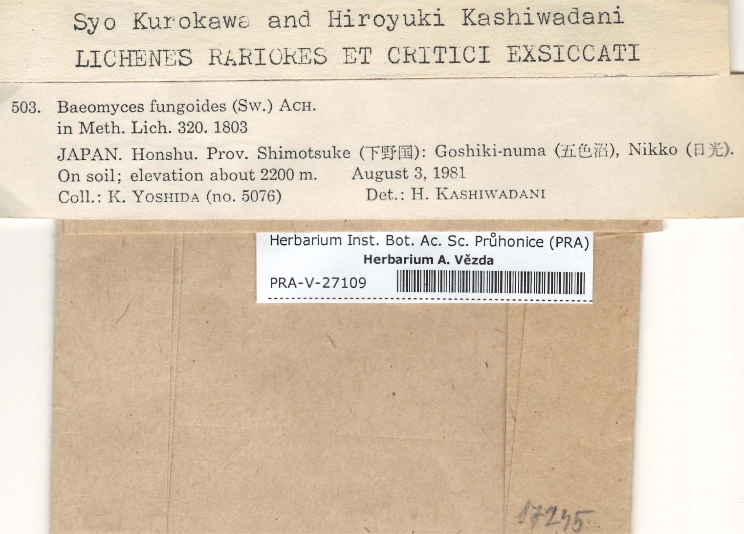 - Kurokawa & Kashiwadani, Lich. Rar. Crit. Exs.