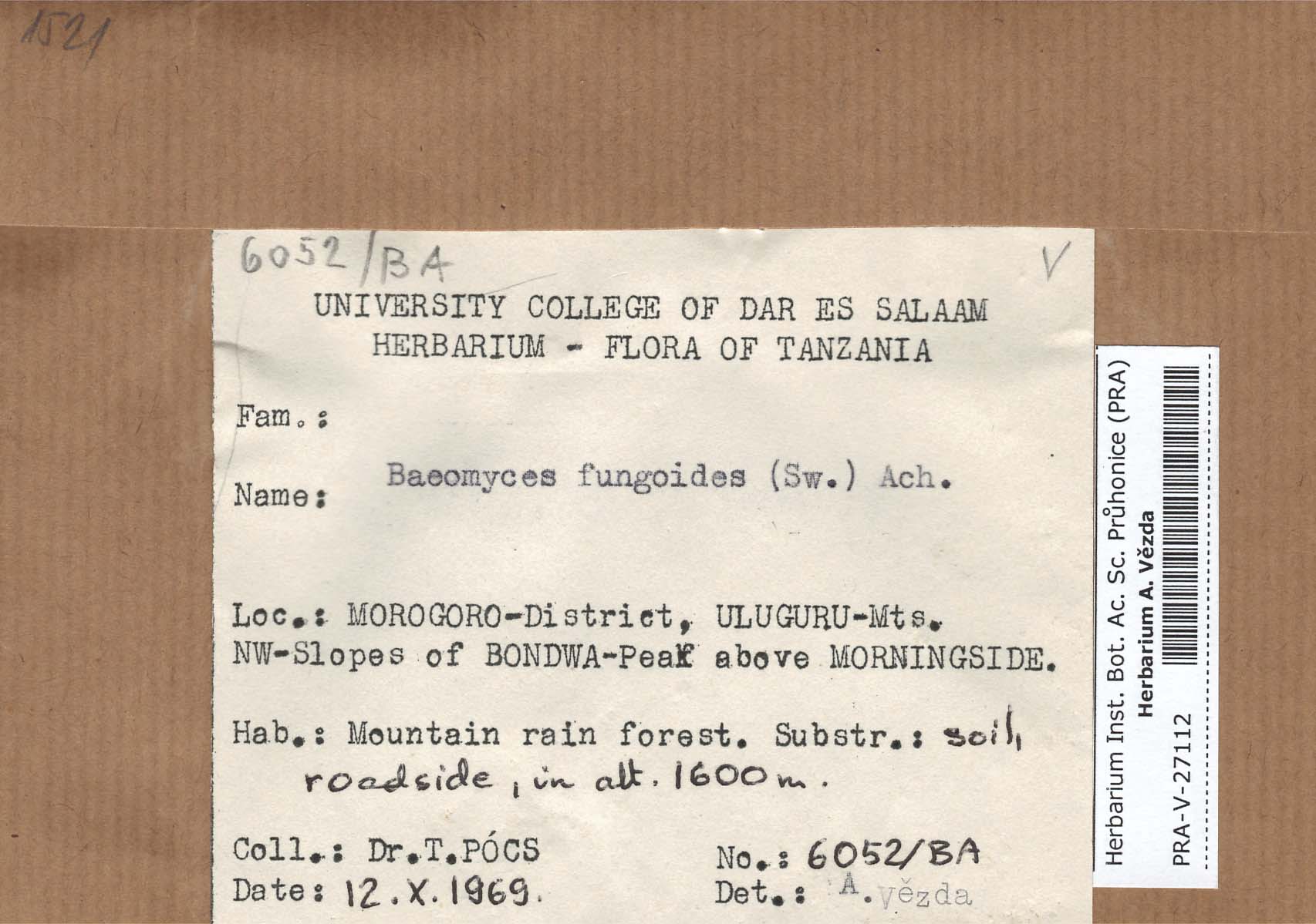 - Deposited in parcel no. 60 Argopsis,Baeomyces