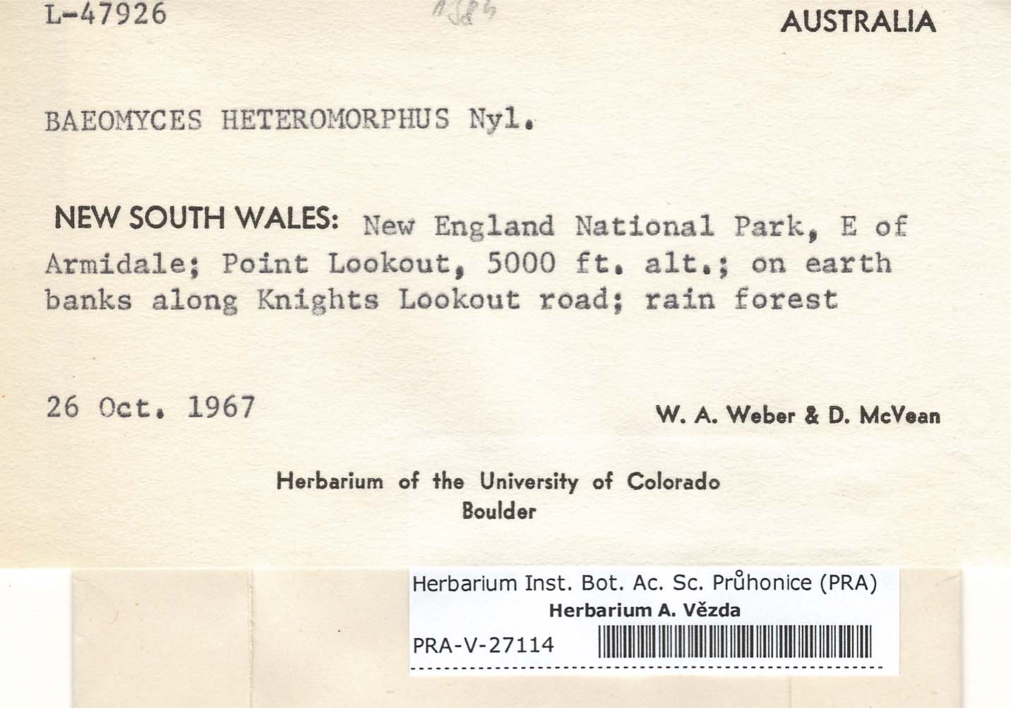 - Deposited in parcel no. 60 Argopsis,Baeomyces
