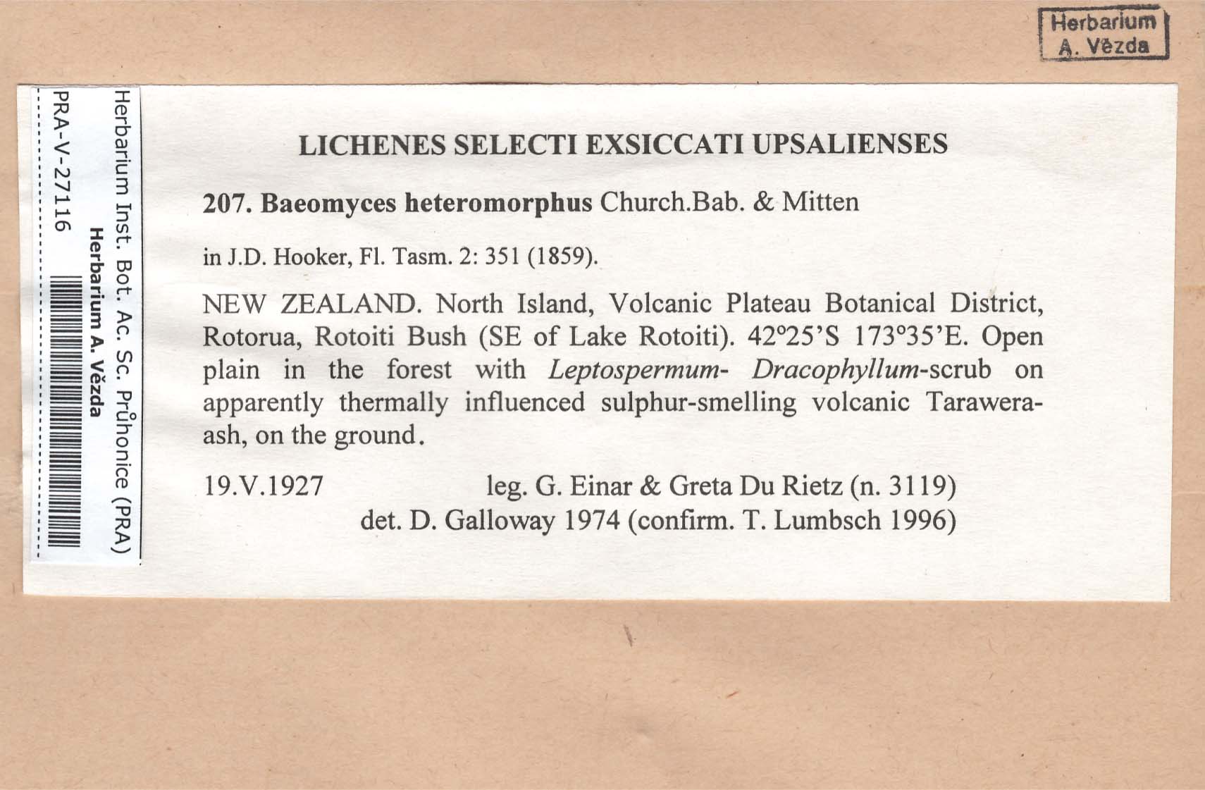 - Deposited in parcel no. 60 Argopsis,Baeomyces