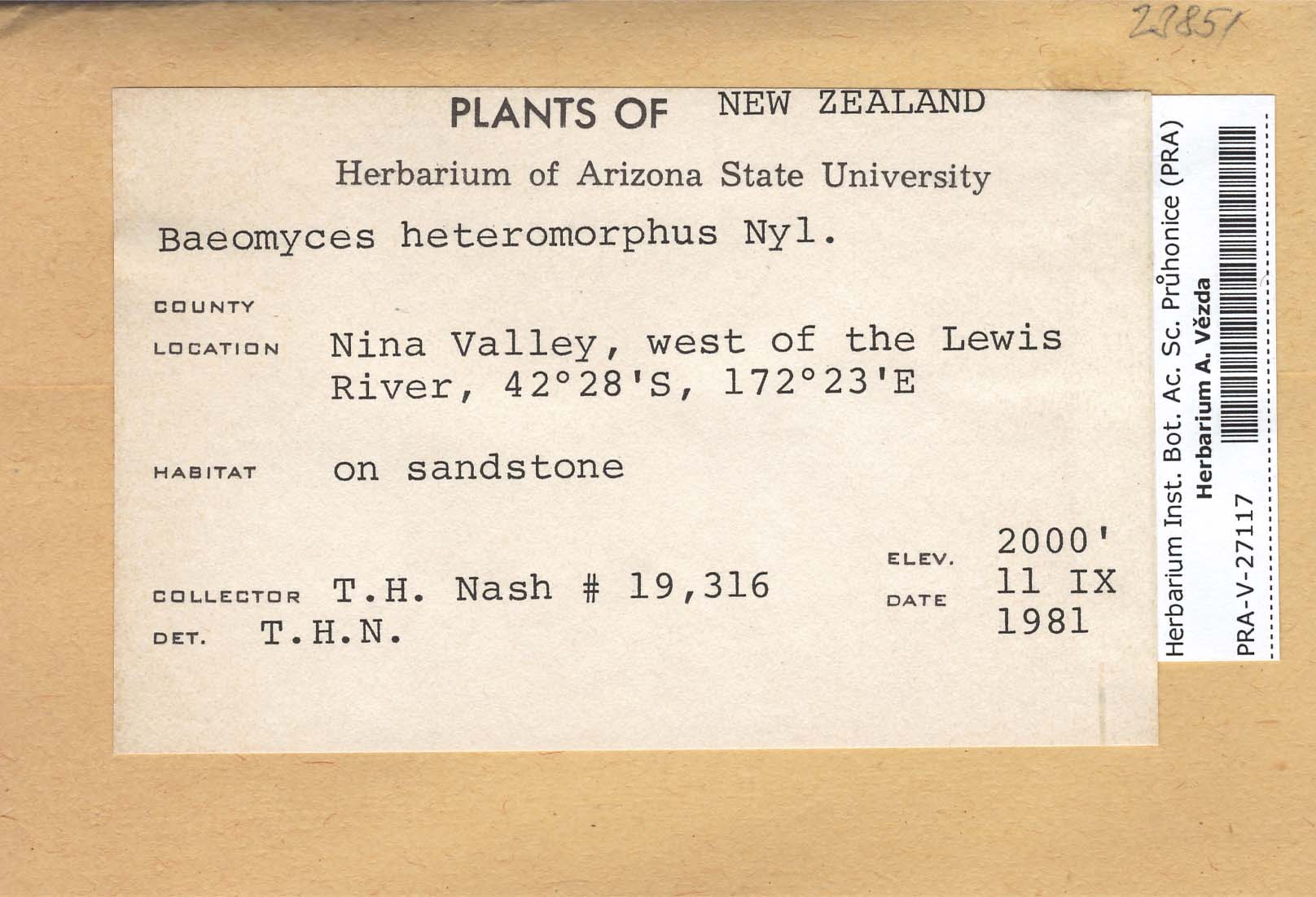 - Deposited in parcel no. 60 Argopsis,Baeomyces
