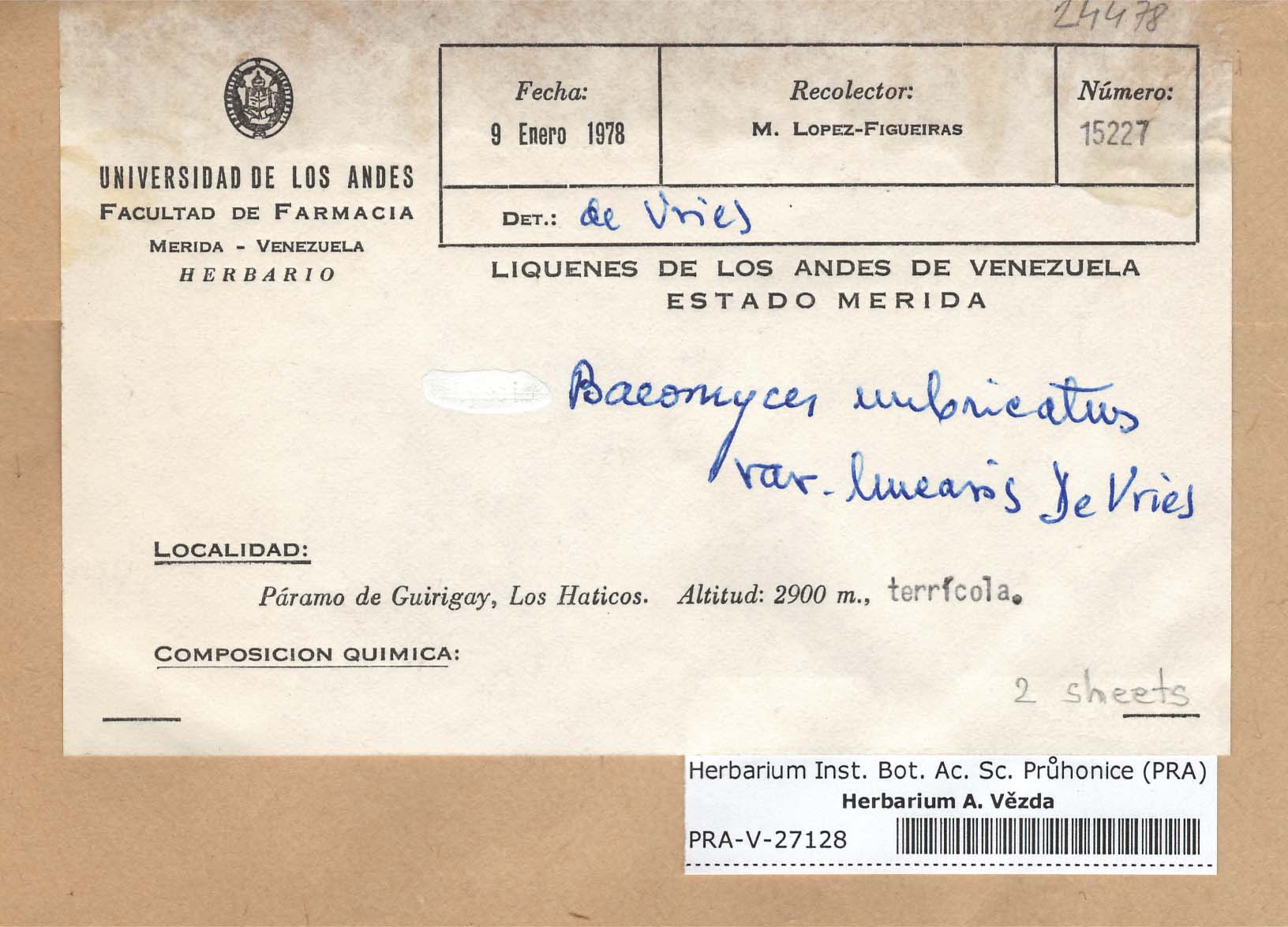 - Deposited in parcel no. 60 Argopsis,Baeomyces