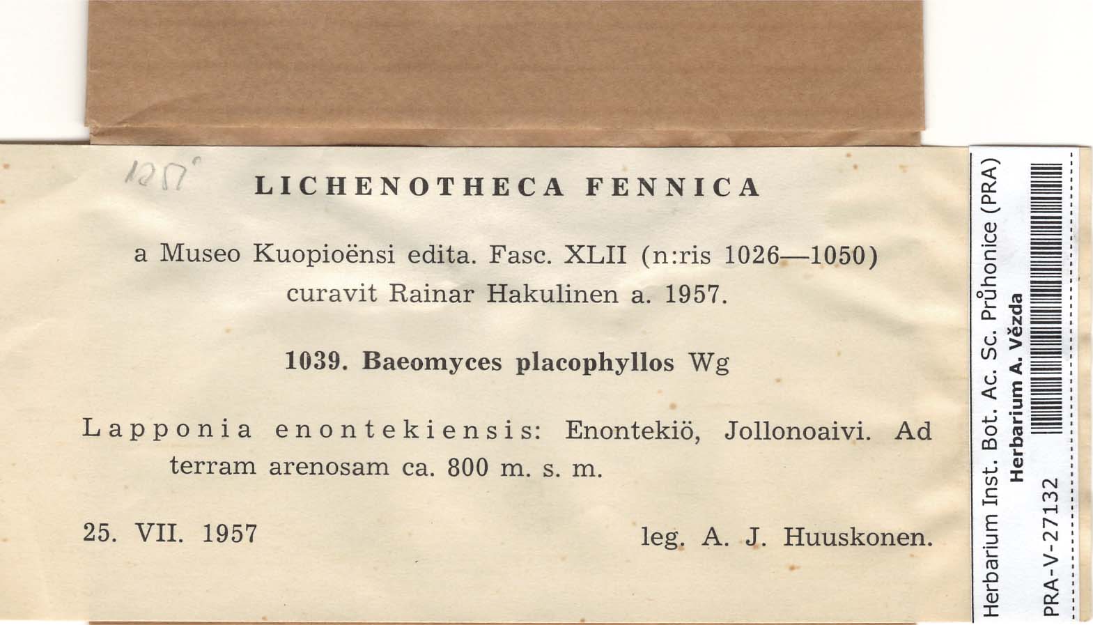 - Deposited in parcel no. 60 Argopsis,Baeomyces