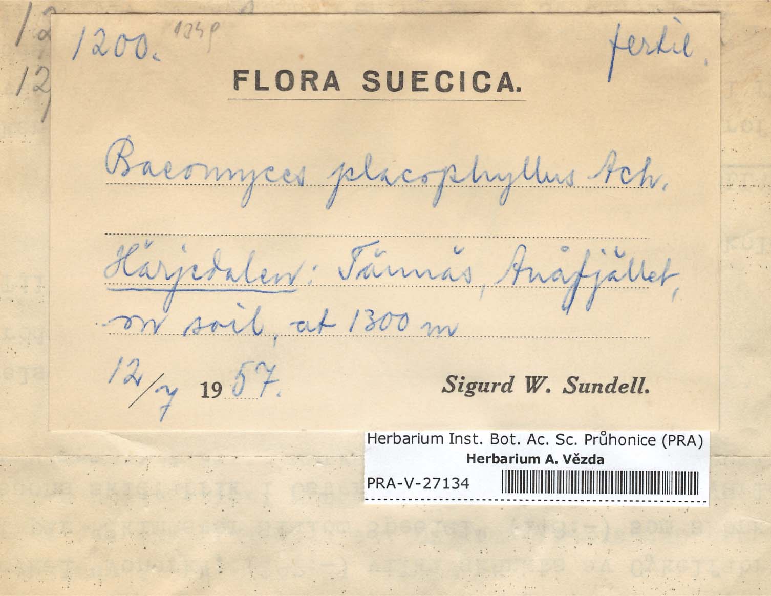 - Deposited in parcel no. 60 Argopsis,Baeomyces