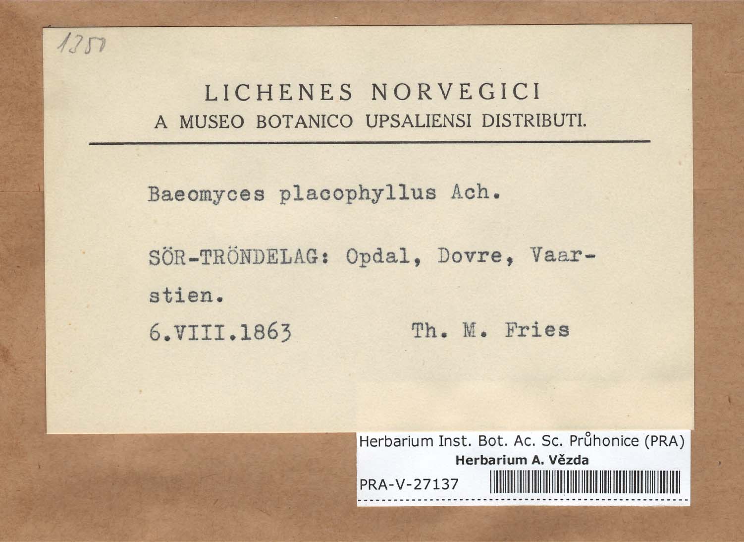 - Deposited in parcel no. 60 Argopsis,Baeomyces