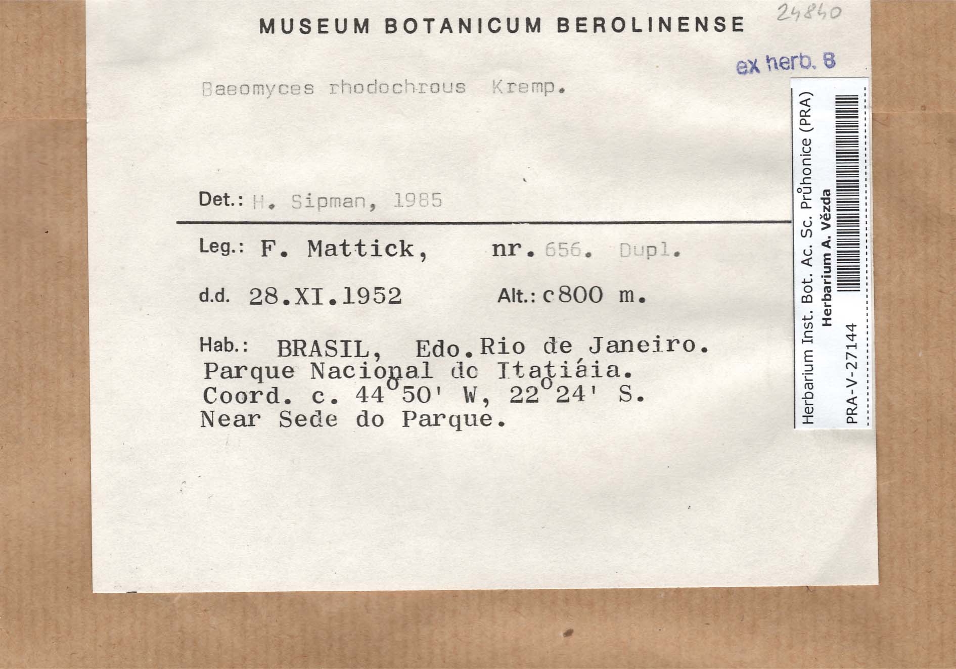 - Deposited in parcel no. 60 Argopsis,Baeomyces