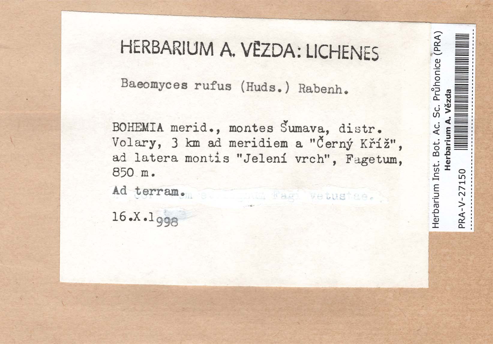 - Deposited in parcel no. 60 Argopsis,Baeomyces