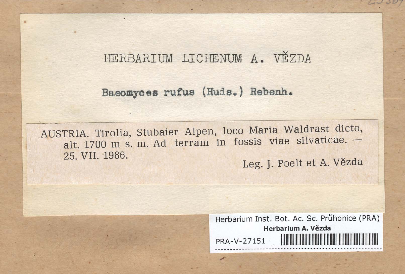 - Deposited in parcel no. 60 Argopsis,Baeomyces