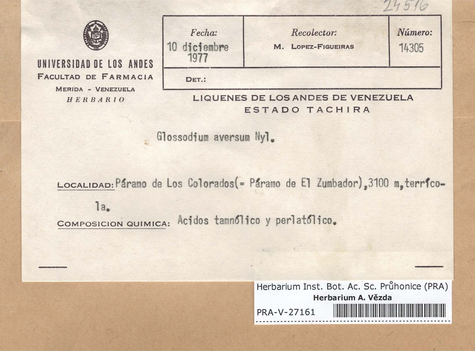 - Deposited in parcel no. 60 Argopsis,Baeomyces