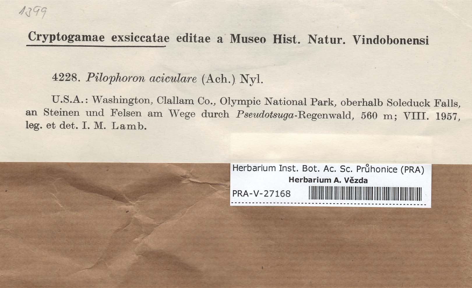 - Deposited in parcel no. 60 Argopsis,Baeomyces
