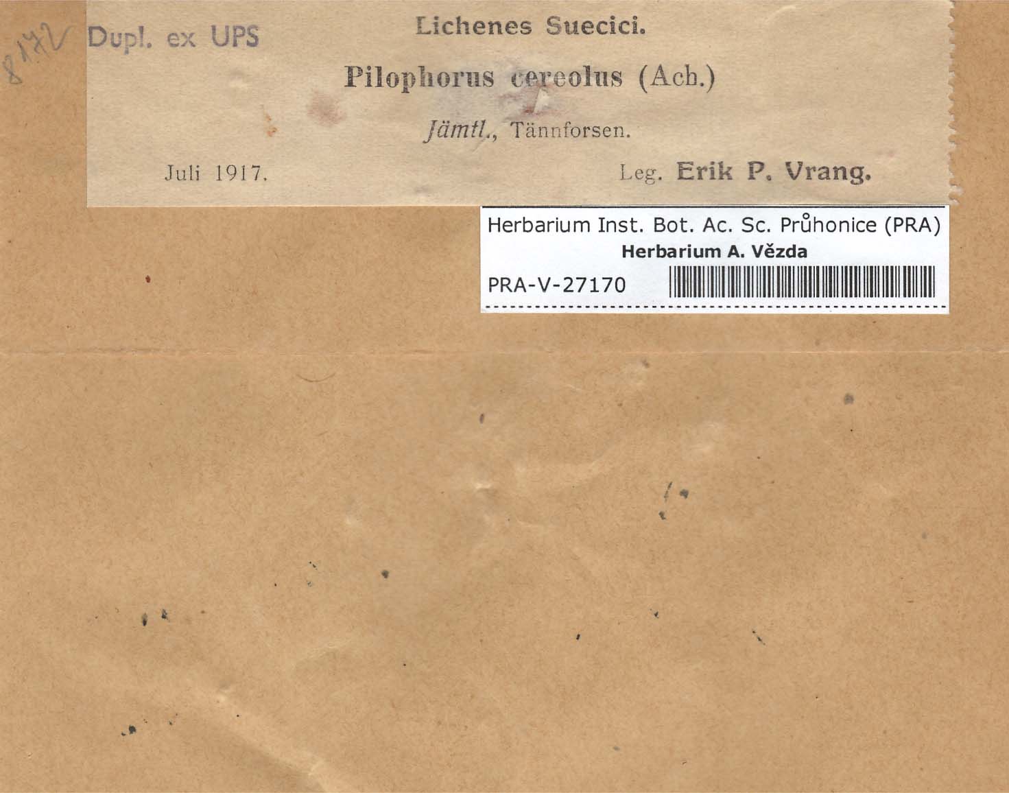 - Deposited in parcel no. 60 Argopsis,Baeomyces