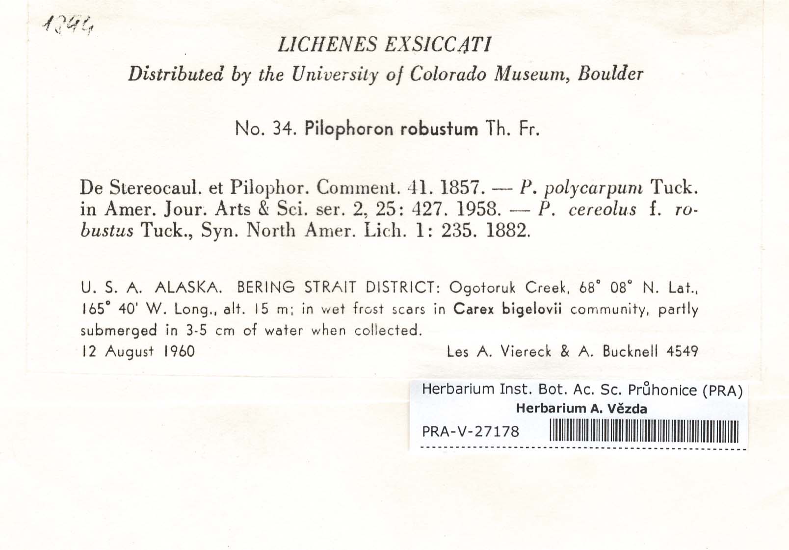 - Deposited in parcel no. 60 Argopsis,Baeomyces