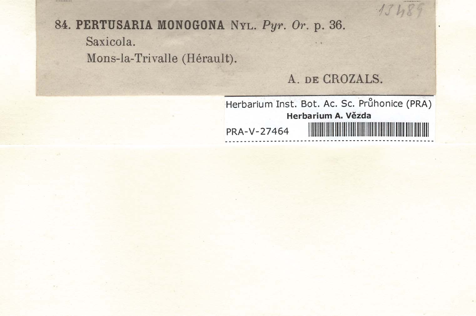 - Deposited in parcel no.63 Pertusaria H-M