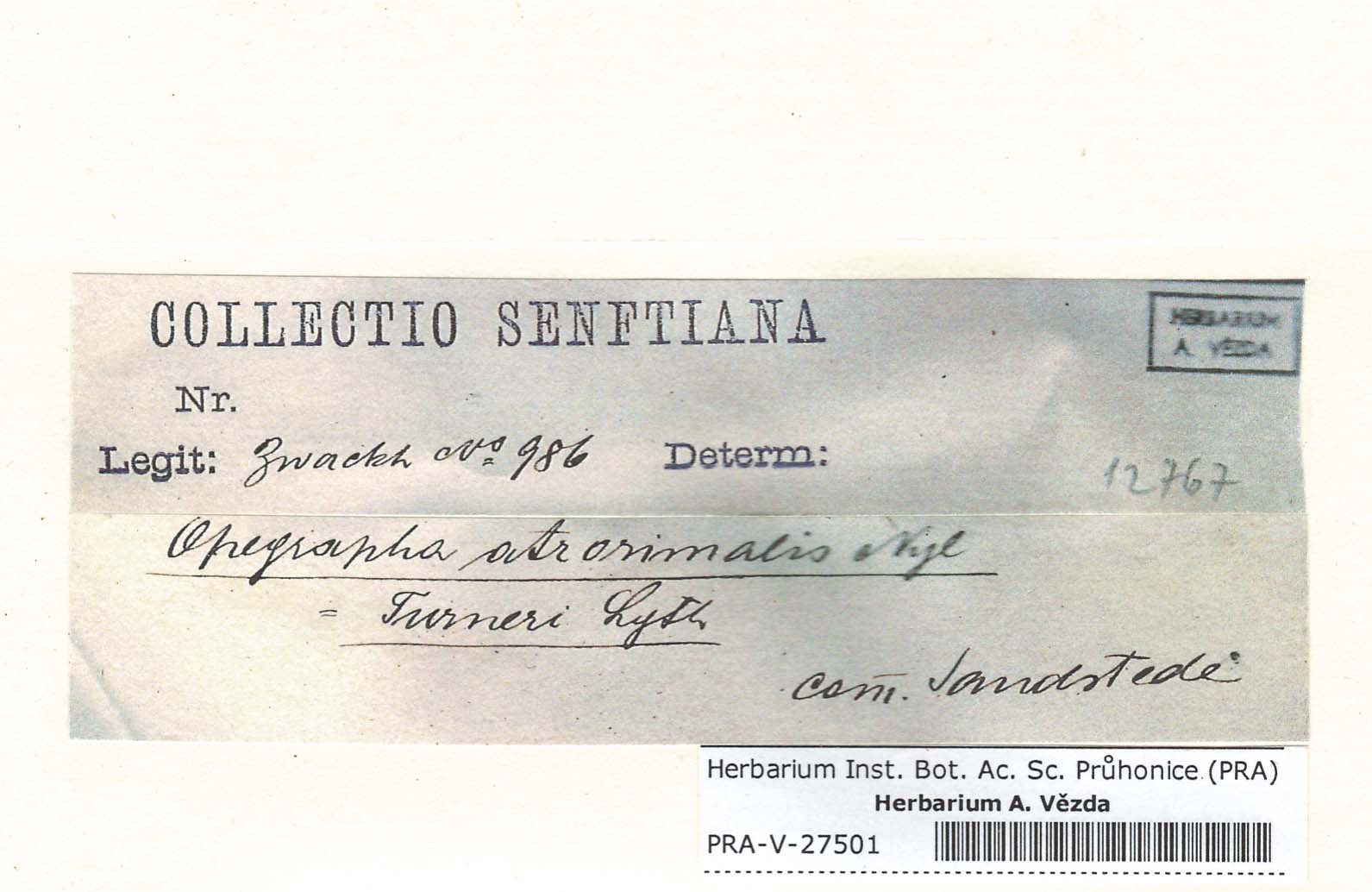 - Deposited in parcel no.64 Opegraphaceae A-O