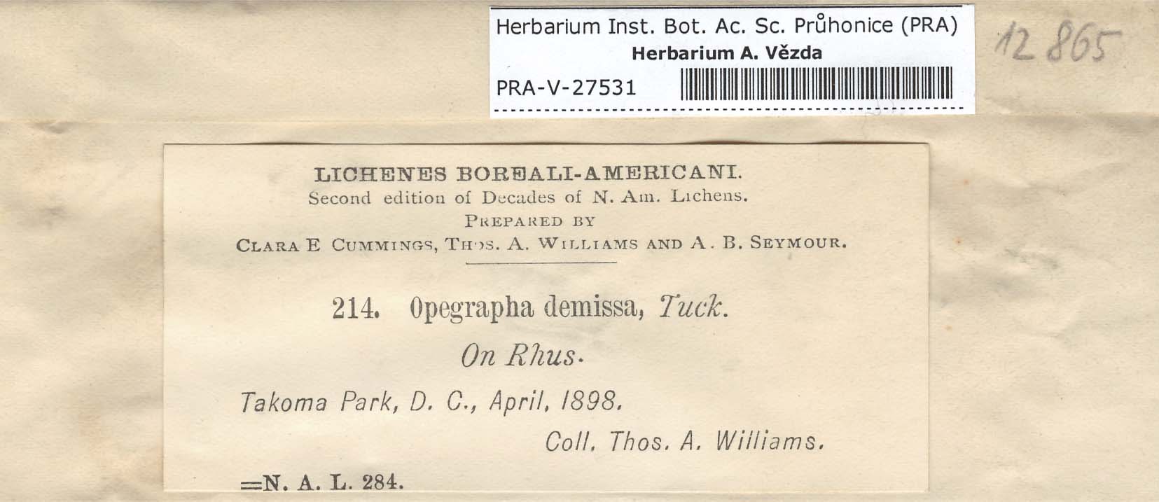 - Deposited in parcel no.64 Opegraphaceae A-O