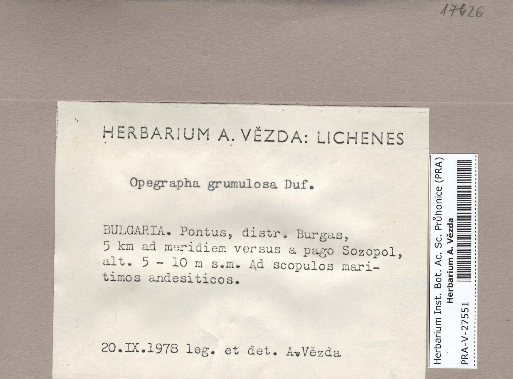 - Deposited in parcel no.64 Opegraphaceae A-O