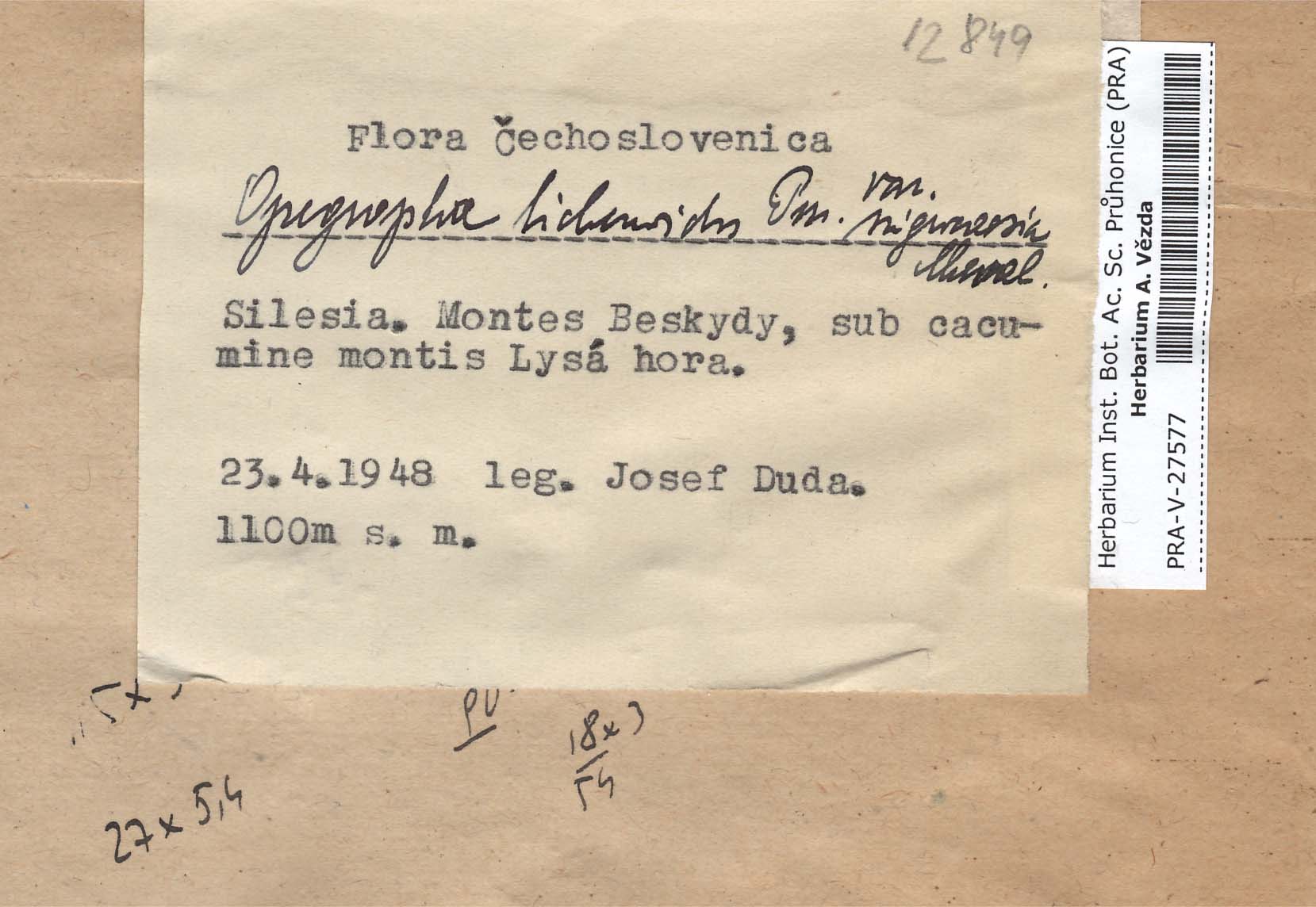 - Deposited in parcel no.64 Opegraphaceae A-O