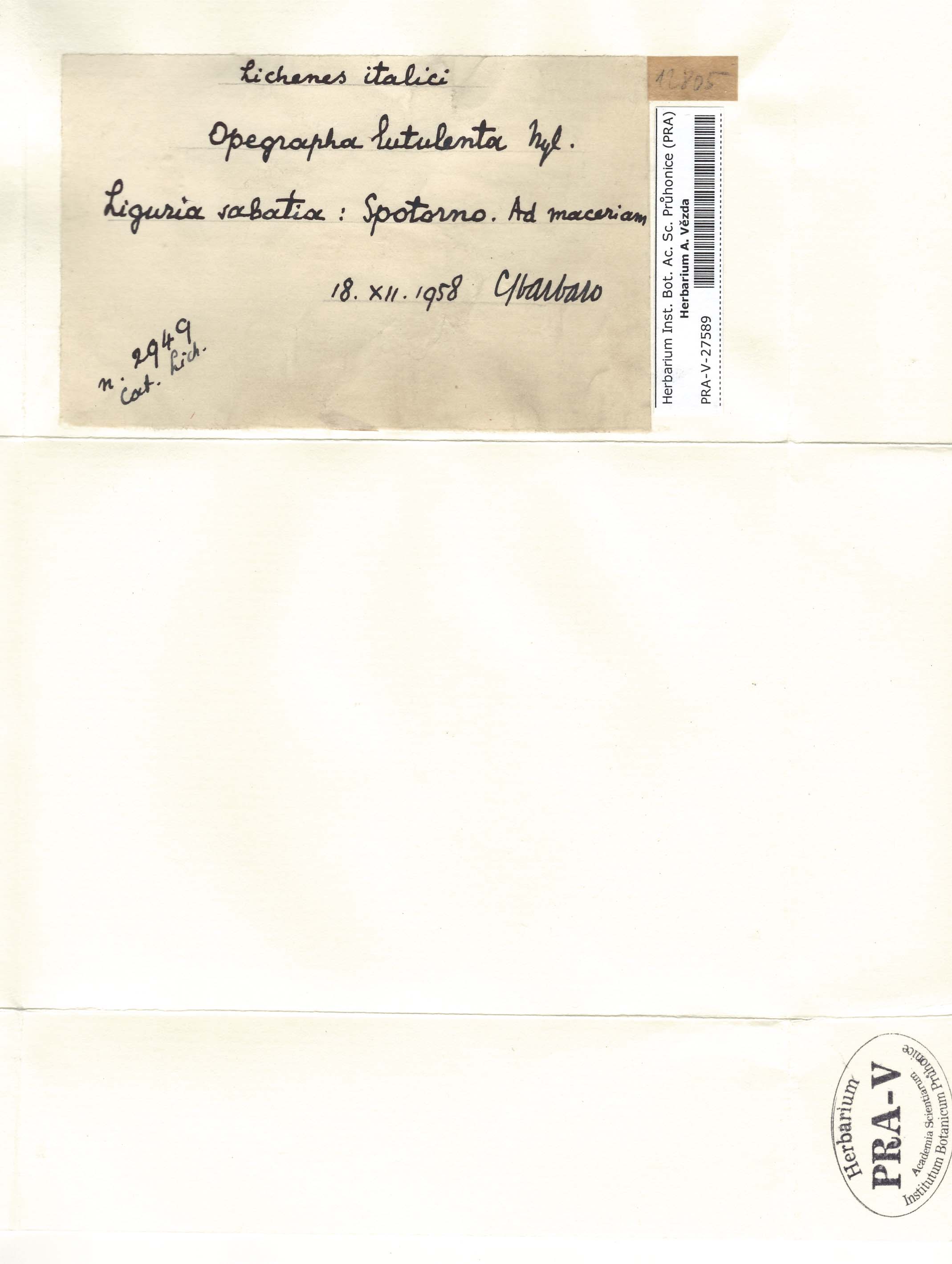 - Deposited in parcel no.64 Opegraphaceae A-O