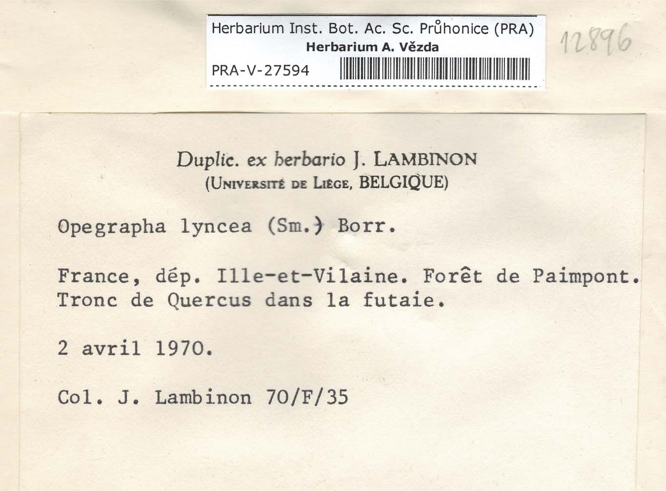 - Deposited in parcel no.64 Opegraphaceae A-O