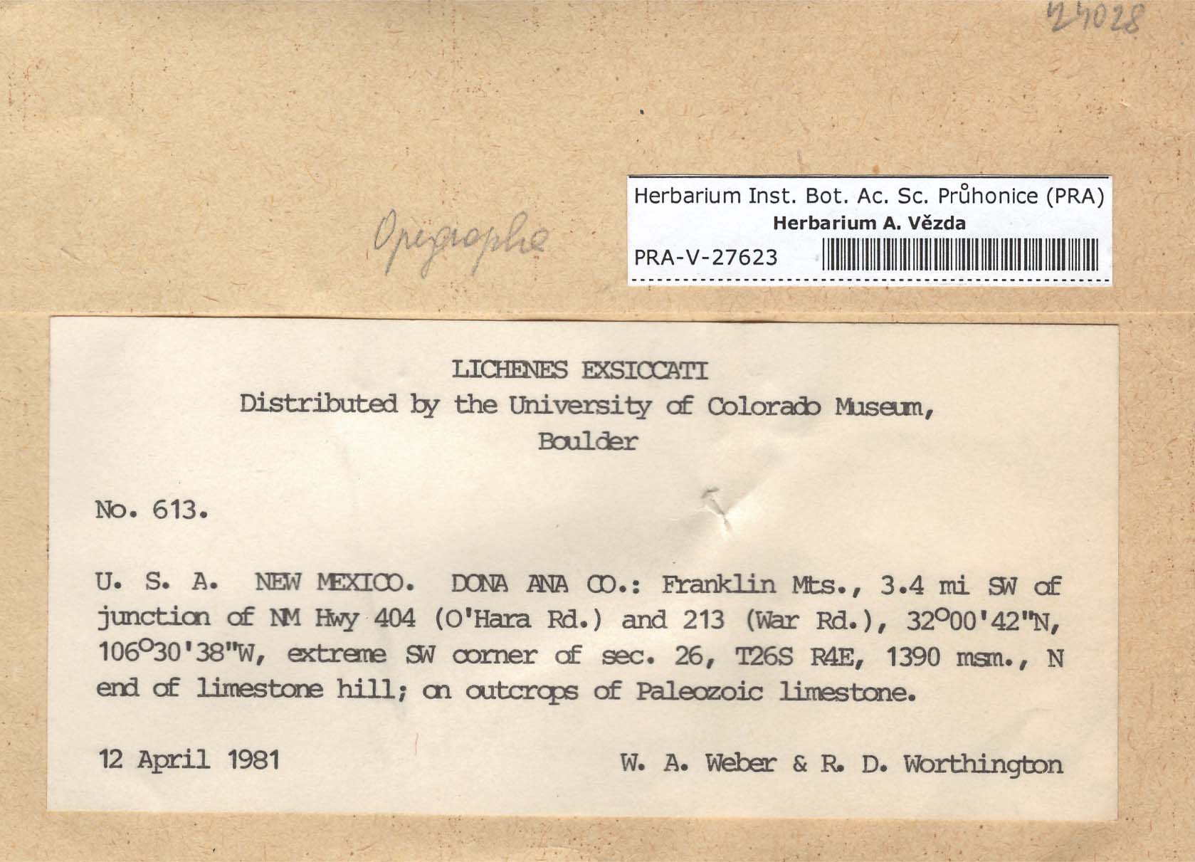 - Deposited in parcel no.64 Opegraphaceae A-O