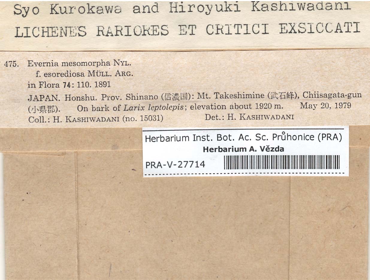 - Deposited in parcel no.66 Evernia,Everniopsis,Letharia,Oropogon,Pseudoevernia