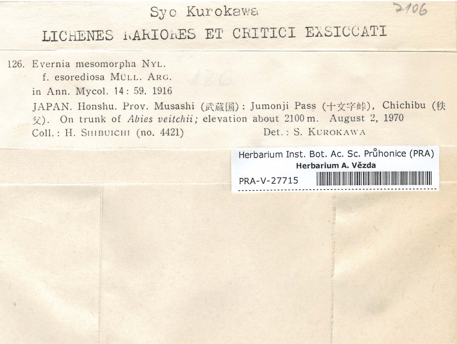 - Deposited in parcel no.66 Evernia,Everniopsis,Letharia,Oropogon,Pseudoevernia