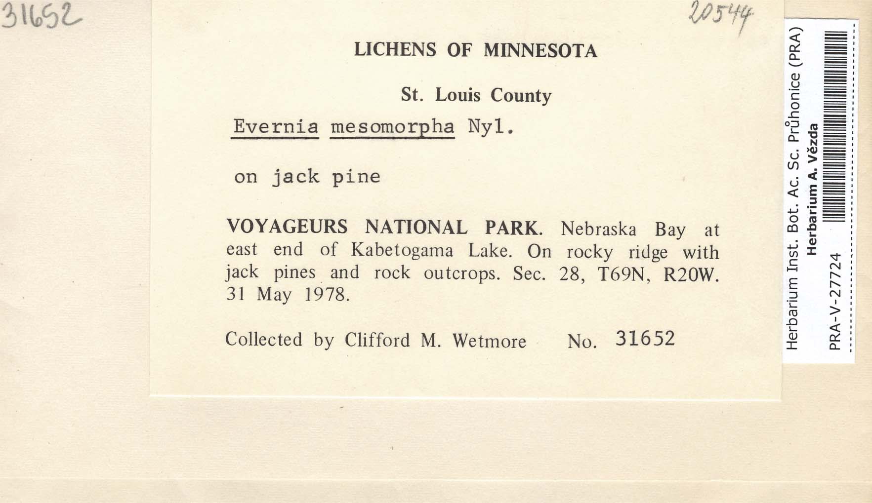 - Deposited in parcel no.66 Evernia,Everniopsis,Letharia,Oropogon,Pseudoevernia