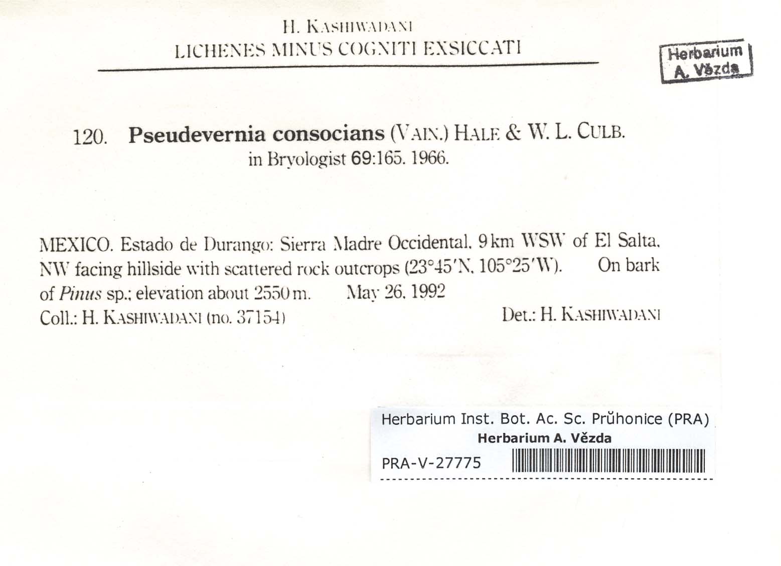 - Deposited in parcel no.66 Evernia,Everniopsis,Letharia,Oropogon,Pseudoevernia