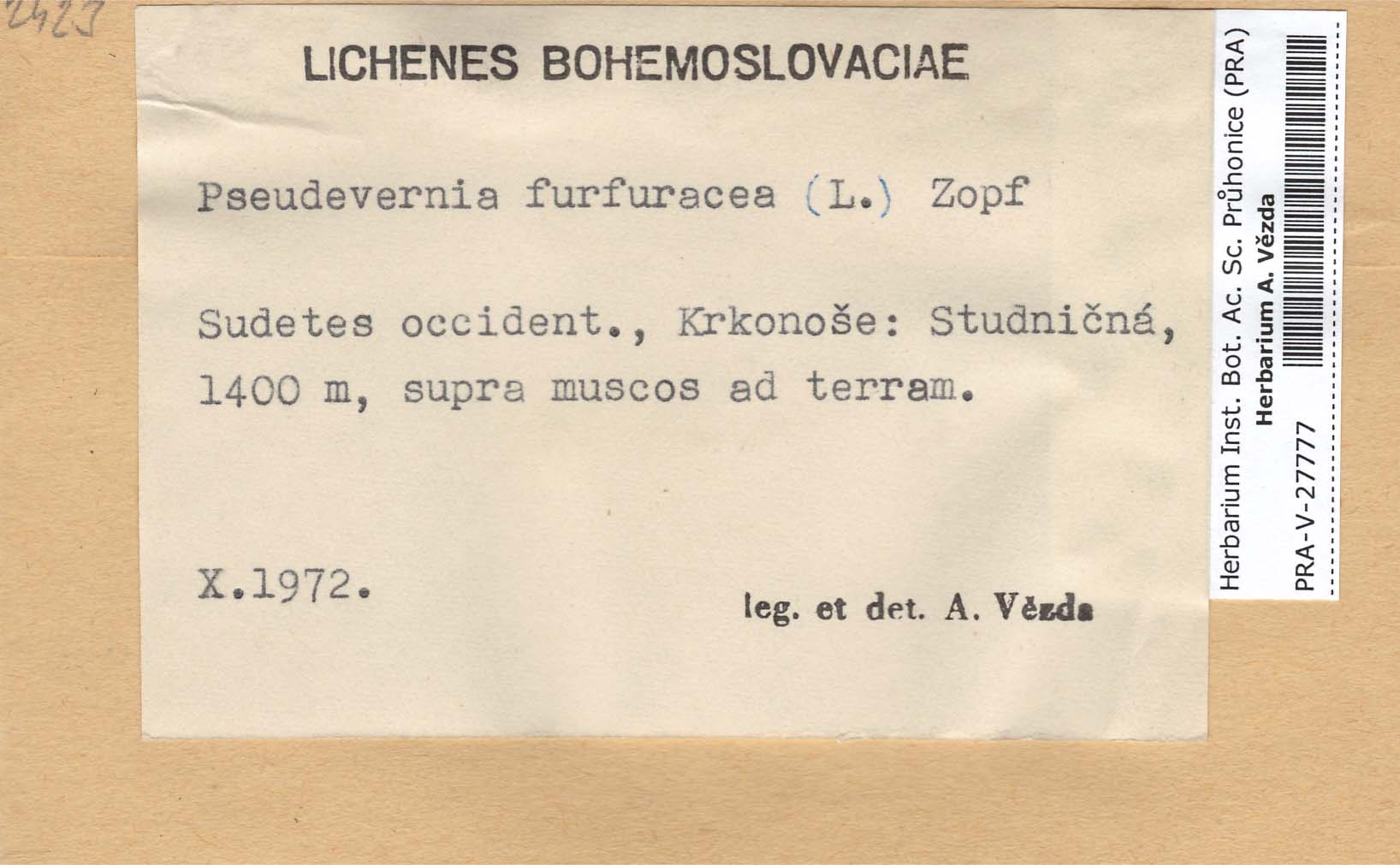 - Deposited in parcel no.66 Evernia,Everniopsis,Letharia,Oropogon,Pseudoevernia