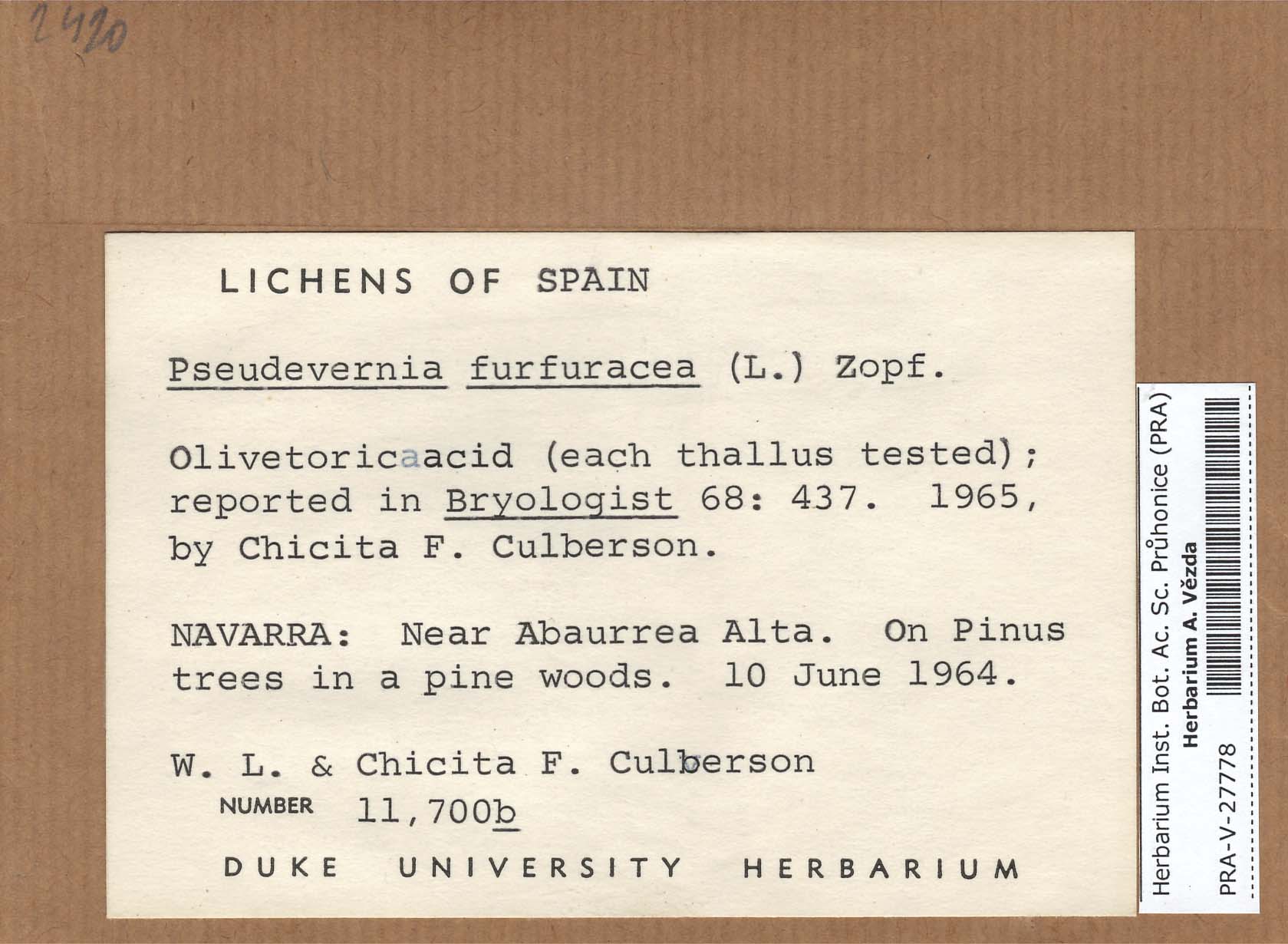 - Deposited in parcel no.66 Evernia,Everniopsis,Letharia,Oropogon,Pseudoevernia