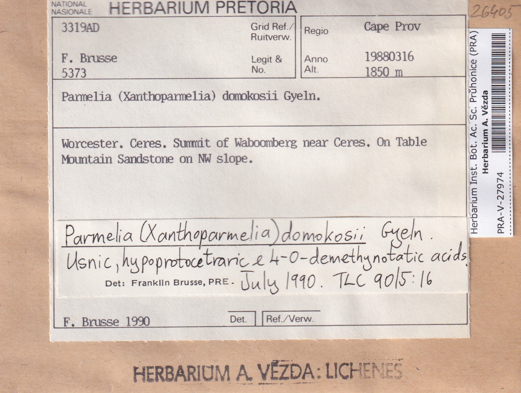 Xanthoparmelia domokosii