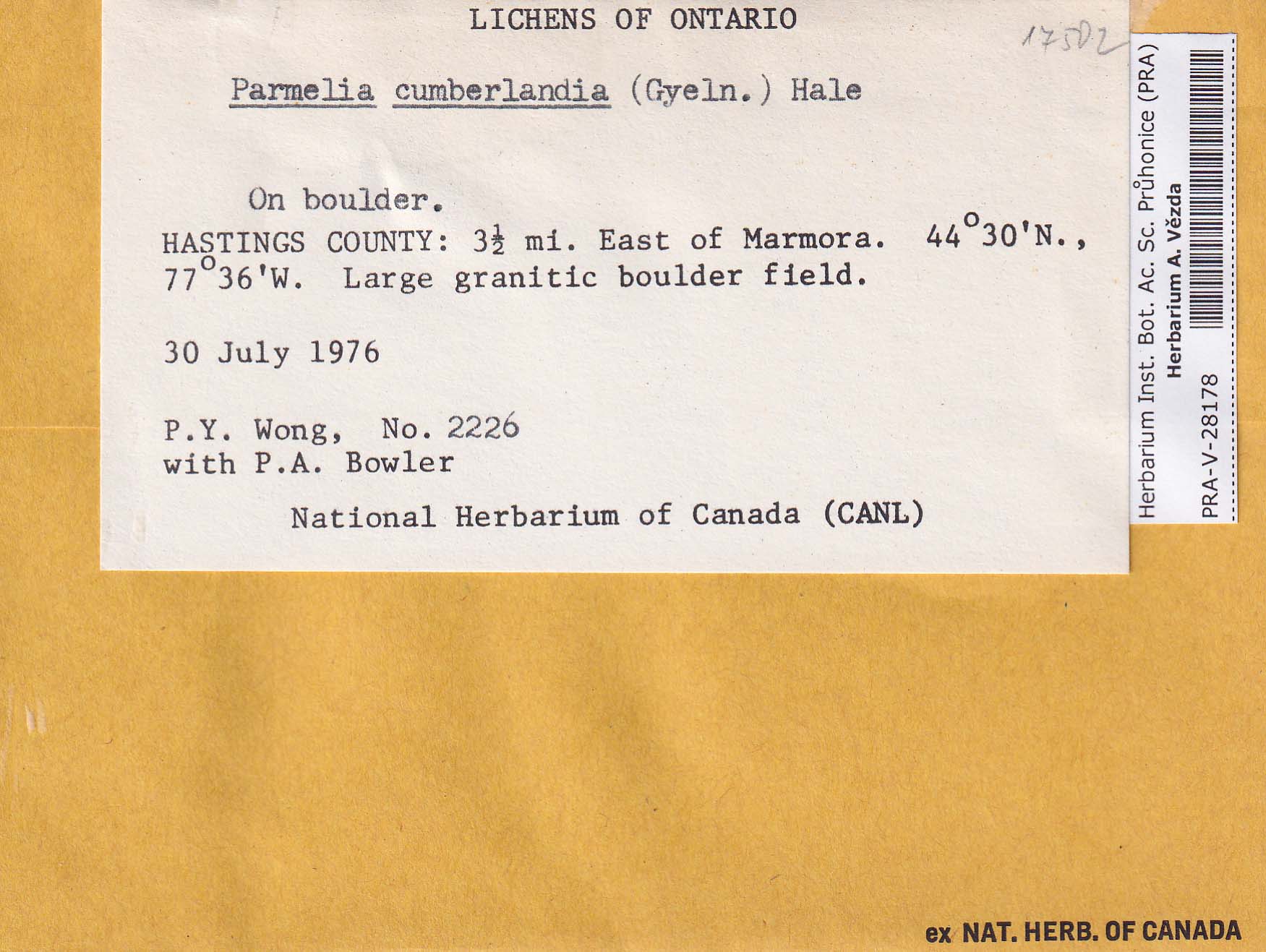 - Deposited in parcel no. 69 Parmelia Ch-Cy