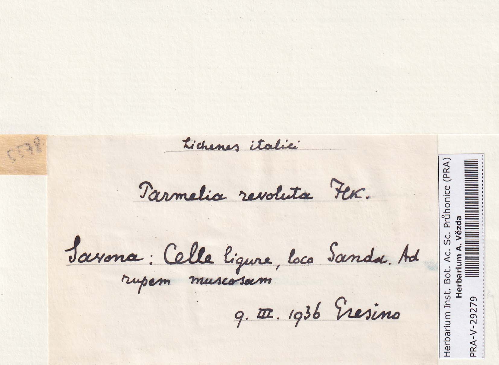 - Notes - specimen (NOT printed on the scheda)