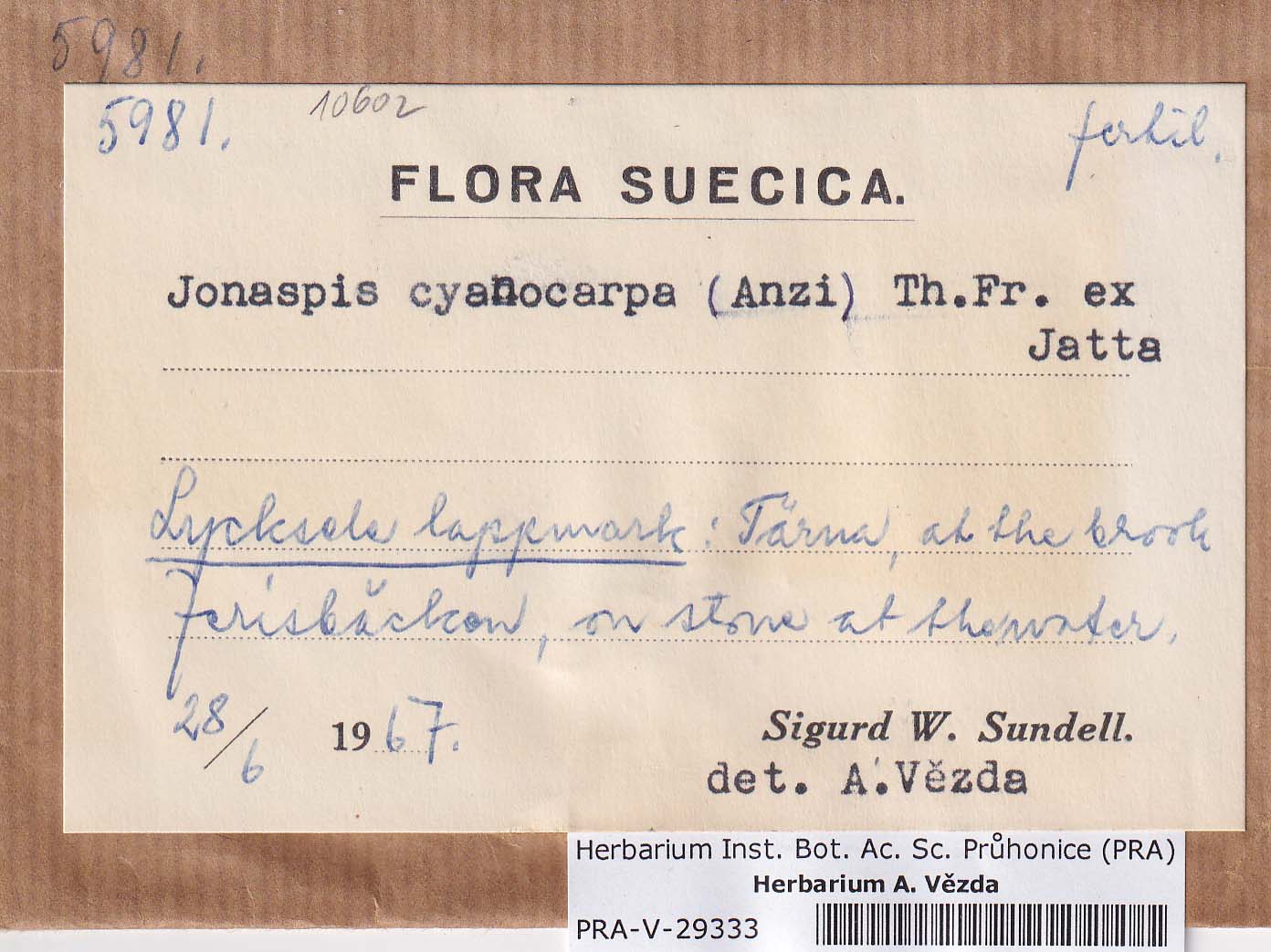 - Deposited in parcel no. 82 Harpidium, Ionaspis, Orceolina, Placopsis, Stephanocyclos, Coppinsia