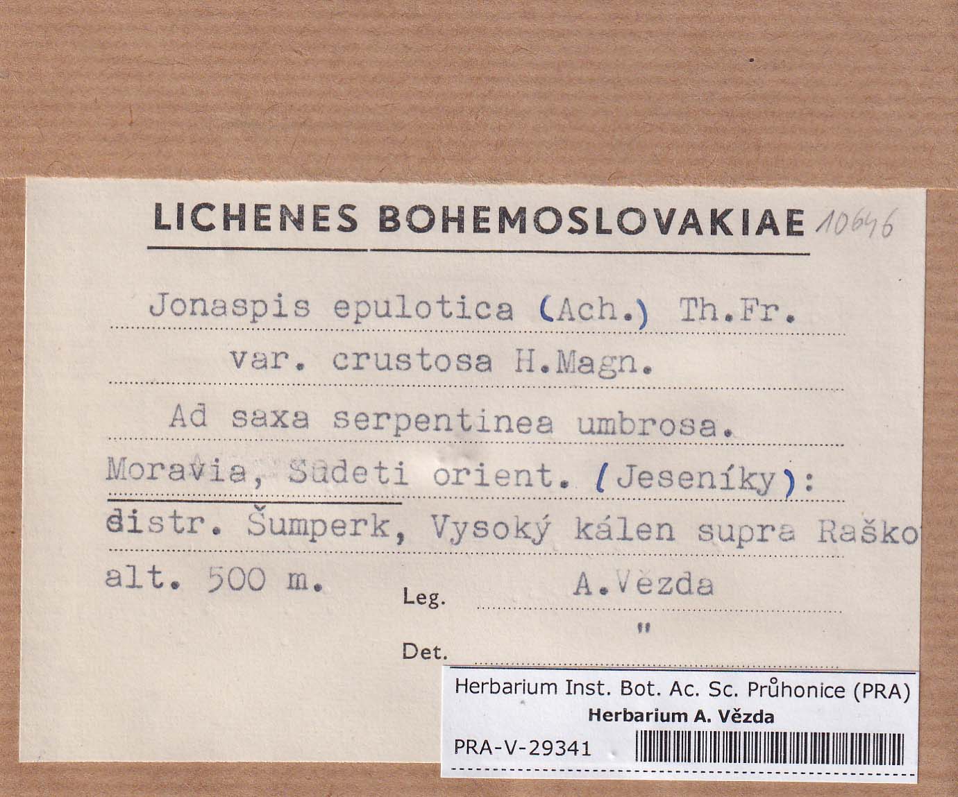 - Deposited in parcel no. 82 Harpidium, Ionaspis, Orceolina, Placopsis, Stephanocyclos, Coppinsia
