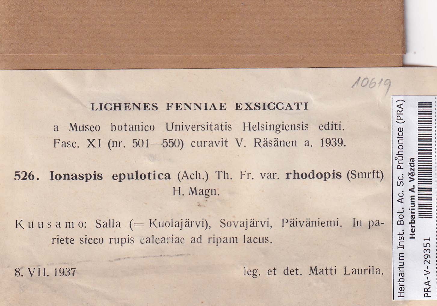 - Deposited in parcel no. 82 Harpidium, Ionaspis, Orceolina, Placopsis, Stephanocyclos, Coppinsia