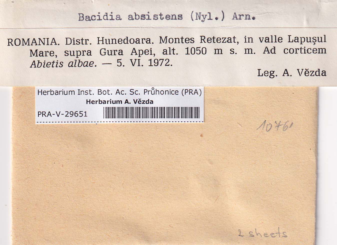 - Deposited in parcel no. 84 Bacidia A-C + indet