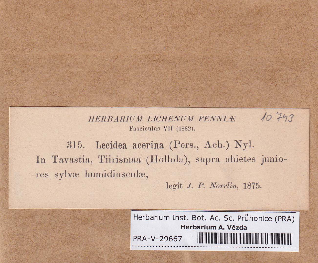 - Deposited in parcel no. 84 Bacidia A-C + indet