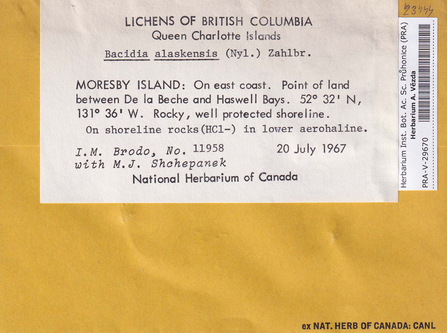 - Deposited in parcel no. 84 Bacidia A-C + indet