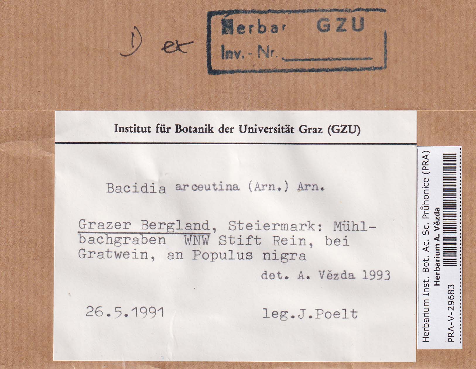- Deposited in parcel no. 84 Bacidia A-C + indet