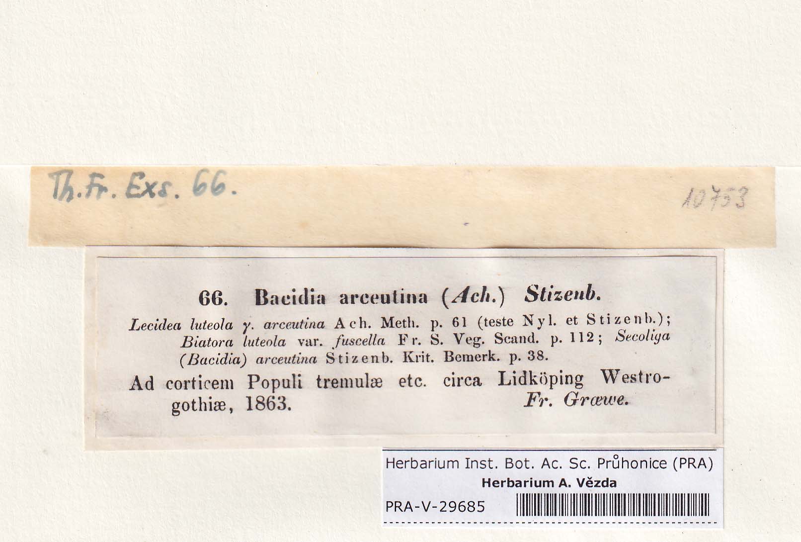 - Deposited in parcel no. 84 Bacidia A-C + indet