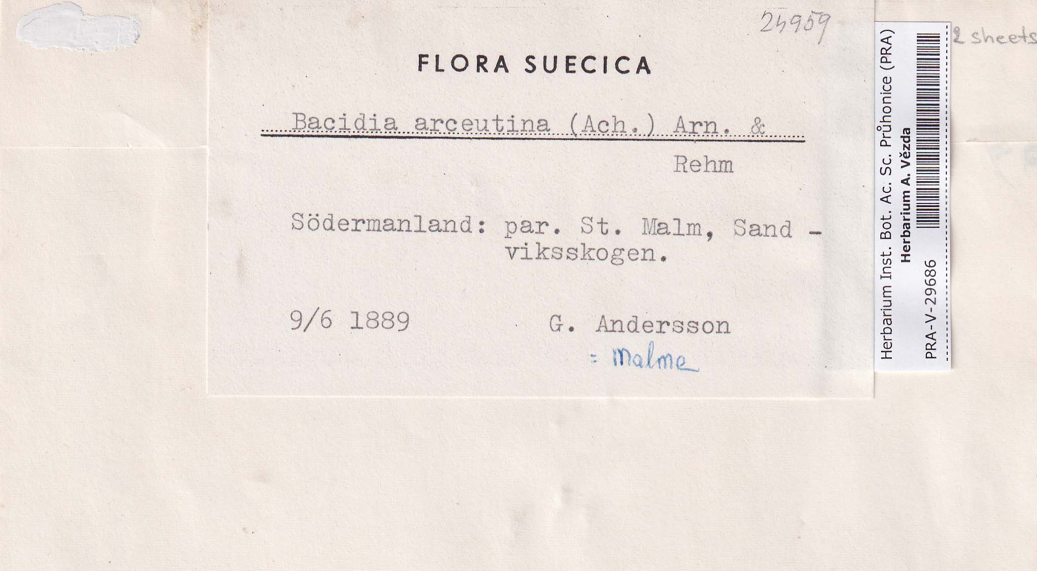 - Deposited in parcel no. 84 Bacidia A-C + indet