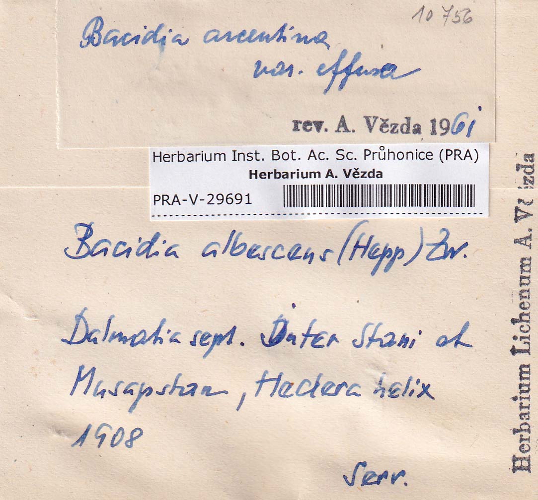 - Deposited in parcel no. 84 Bacidia A-C + indet