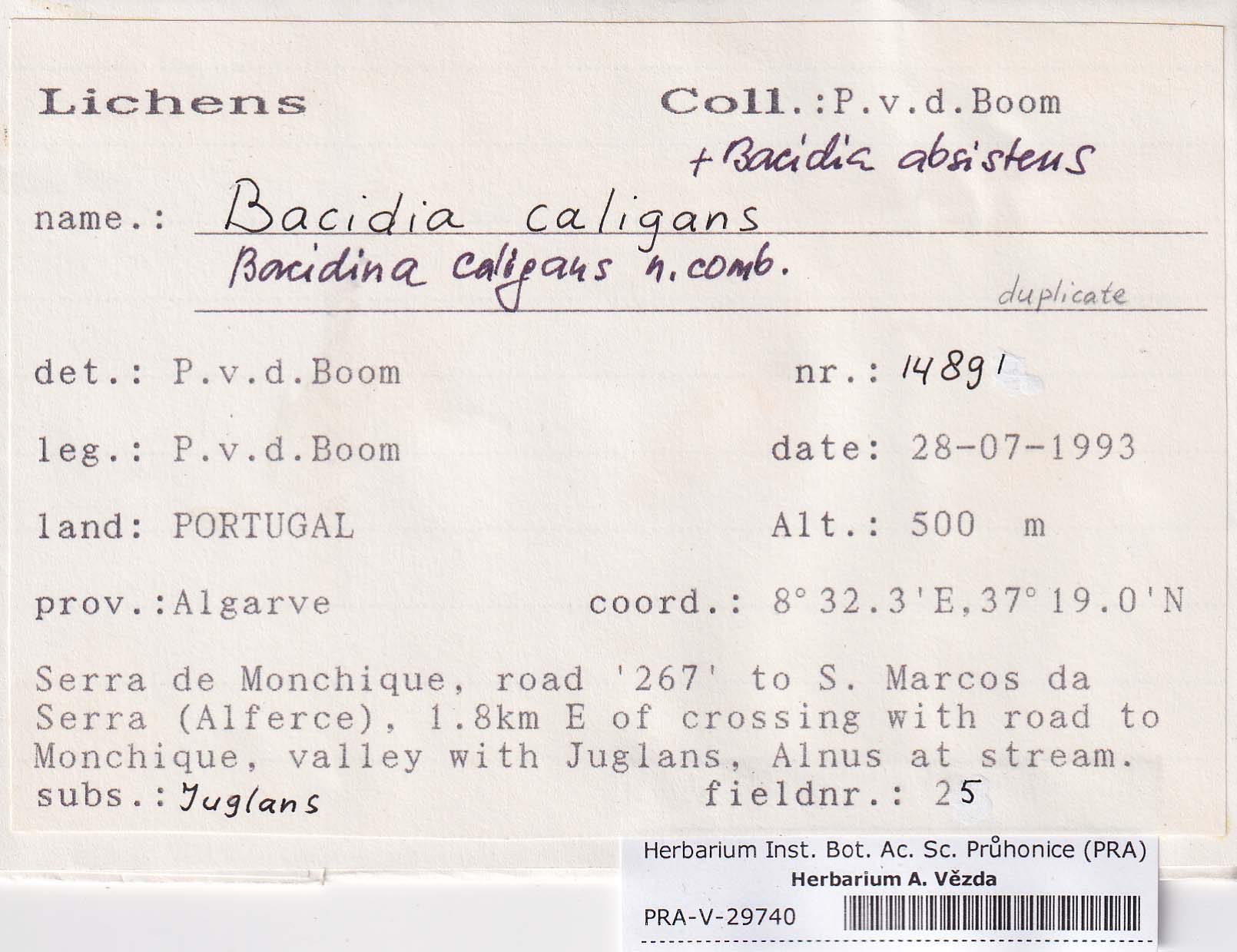 - Deposited in parcel no. 84 Bacidia A-C + indet