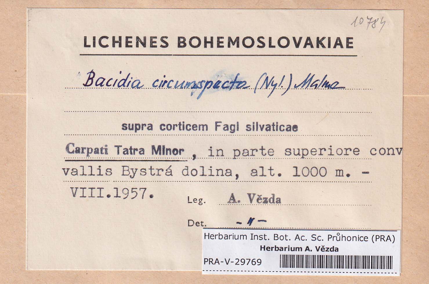 - Deposited in parcel no. 84 Bacidia A-C + indet
