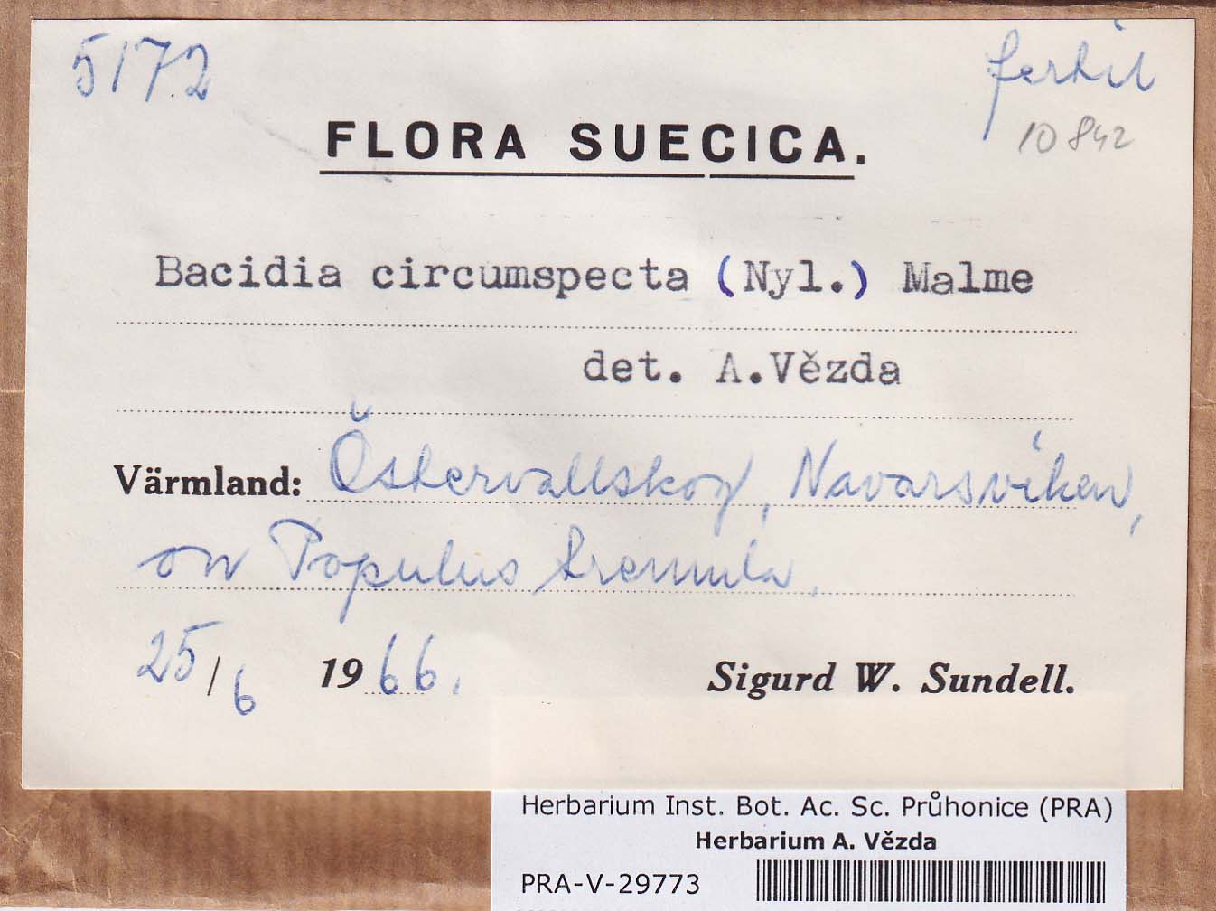 - Deposited in parcel no. 84 Bacidia A-C + indet
