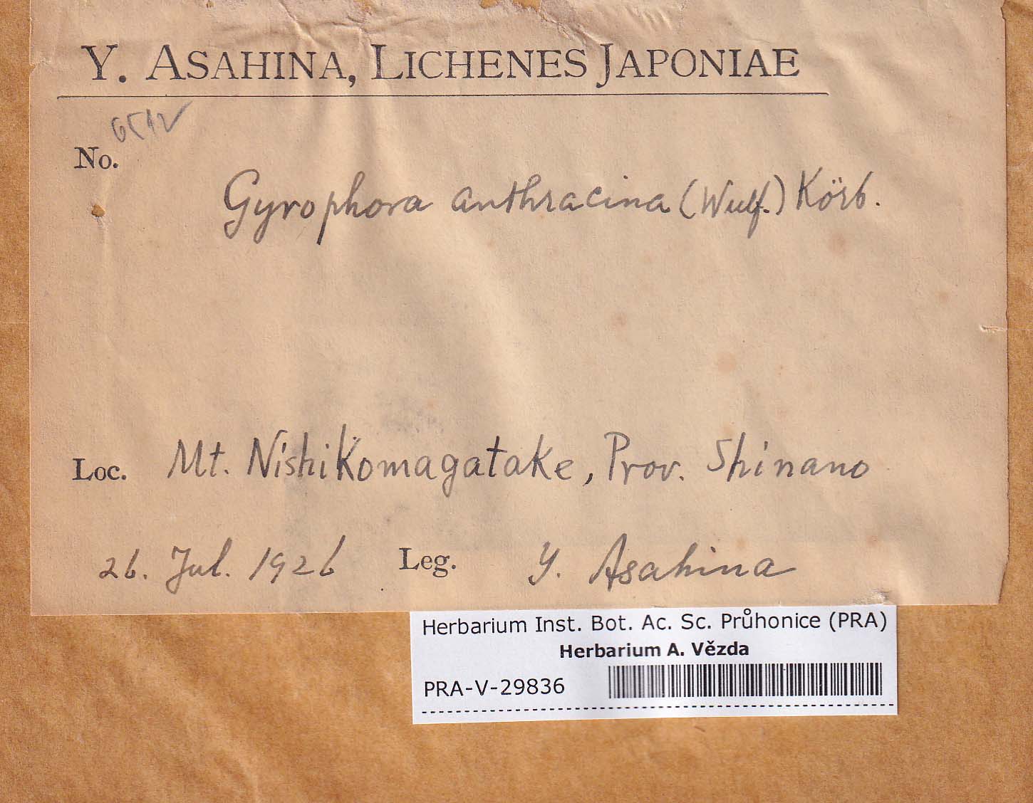 - Deposited in parcel no. 86 Umbilicaria A-H
