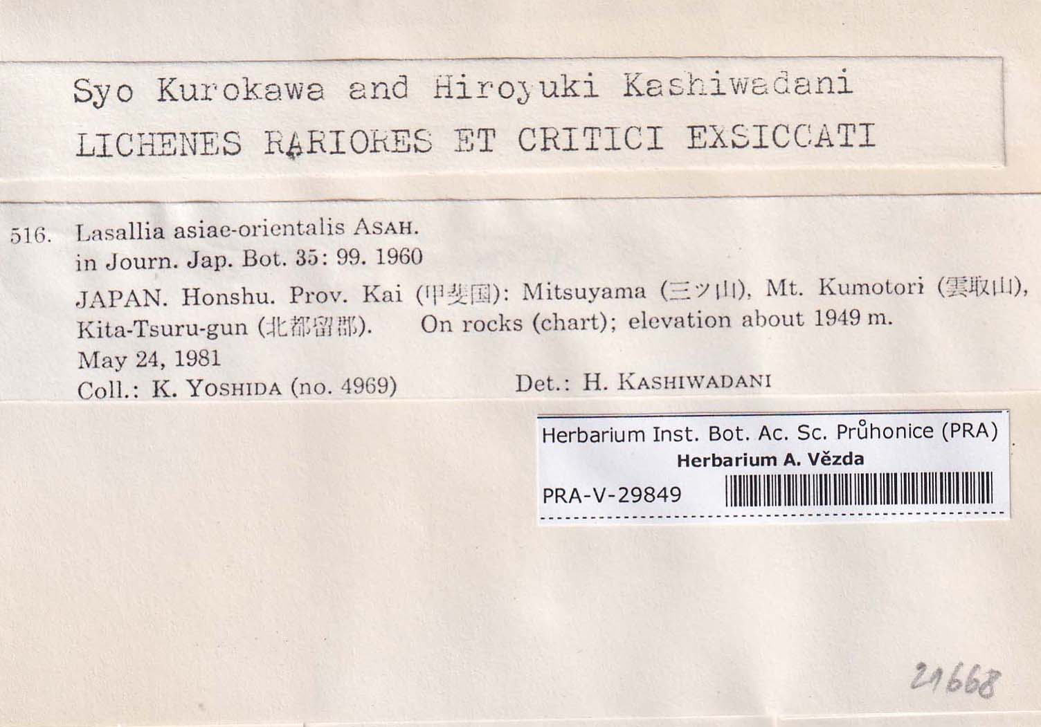 - Kurokawa & Kashiwadani, Lich. Rar. Crit. Exs.